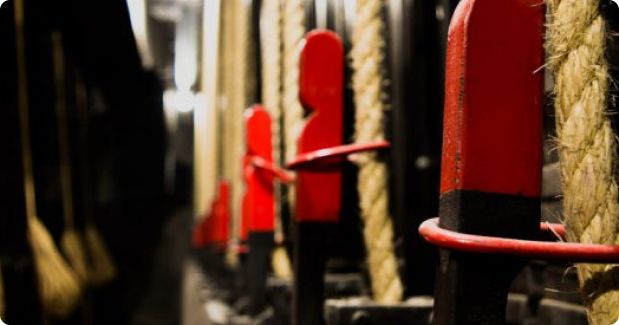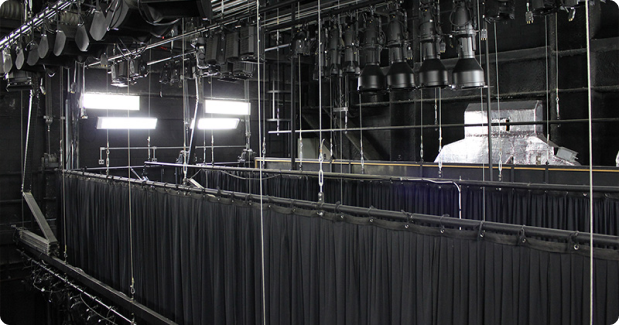 Grids e Trilhas iluminadas, Estruturas de suporte e Passarelas de luz, Gradeamentos, Plataformas, Varandas técnicas e de recarga. Dispositivos de controle horizontais e verticais. Conjuntos abrangentes de mecanismos elétricos e contrabalançados.